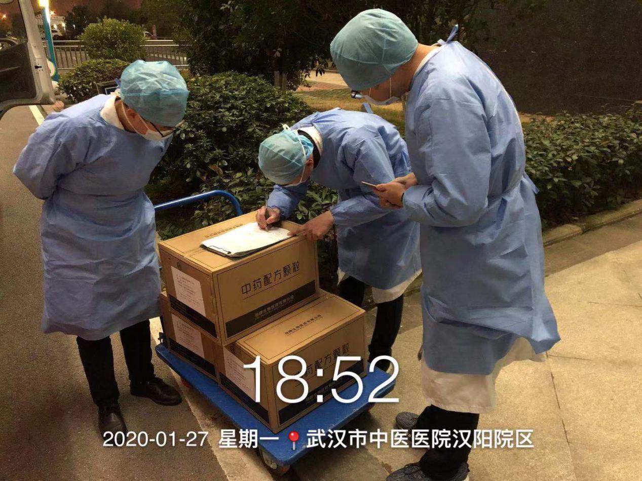 1月27日(正月初三),勁牌將趕制的3.6萬服預防新型冠狀病毒肺炎中藥配方顆粒送達武漢、黃石各指定醫院,為一線醫護人員送去一份健康守護。